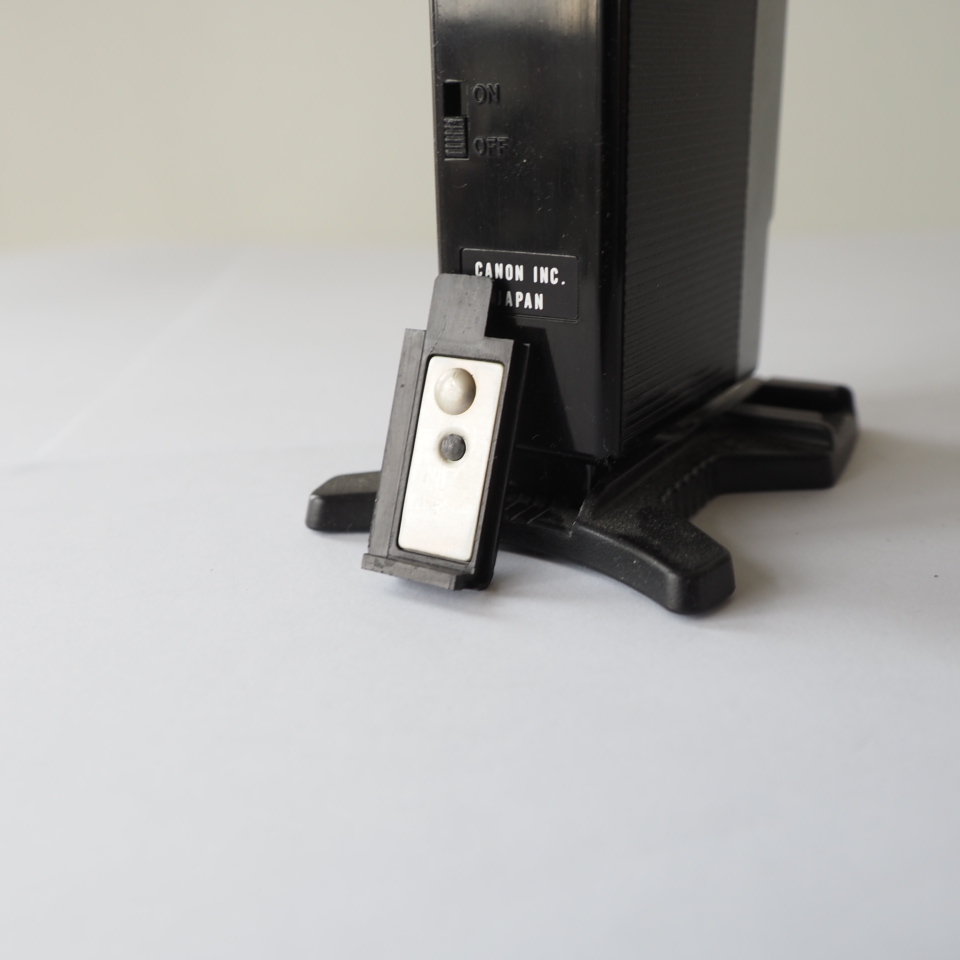 Originele Canon flitser voor de Canonet modellen (17/19/28). In perfecte staat, nauwelijks gebruikssporen, en heel schone batterij contacten.